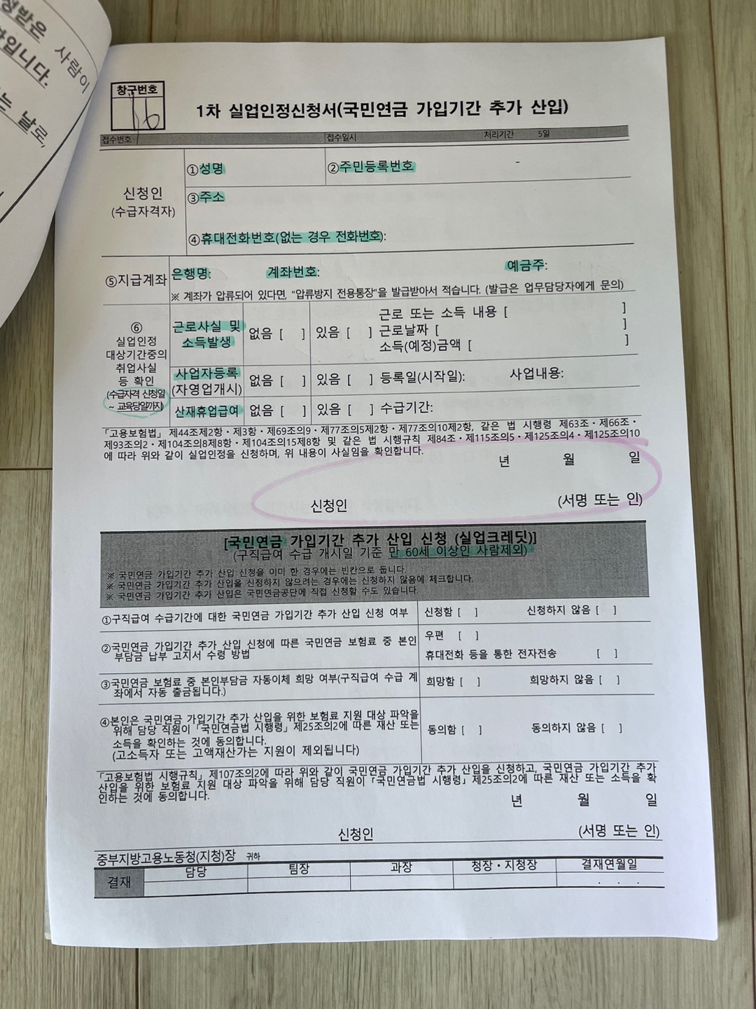 다음 방문 일자에 맞춰 뒤에 인적사항, 계좌 등 기재해서