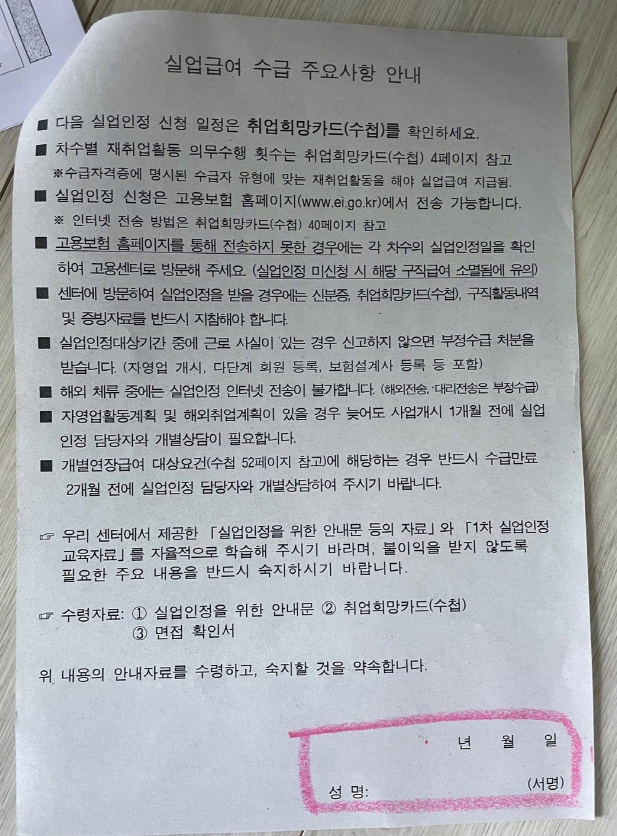 실업급여 설명회할 때 가져가야 함.