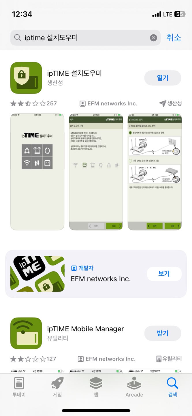 설정한 아이피타임 비밀번호로 다시 잡아 주면 끝!
